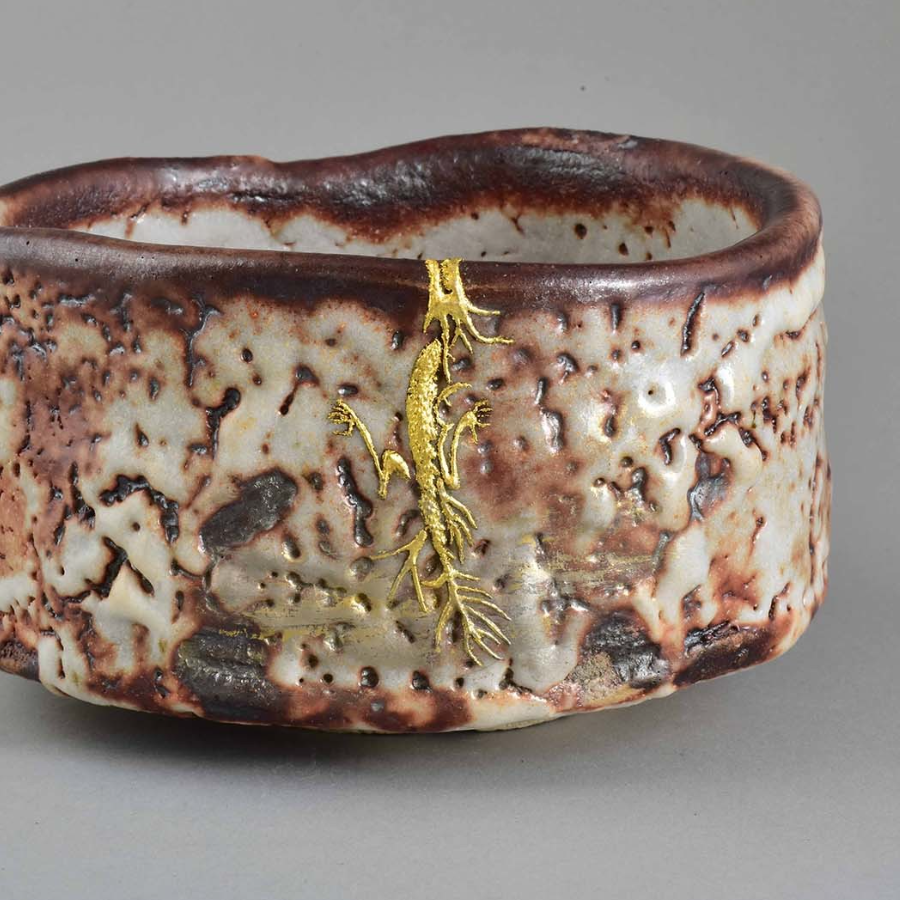 唐津の陶片に梨地で