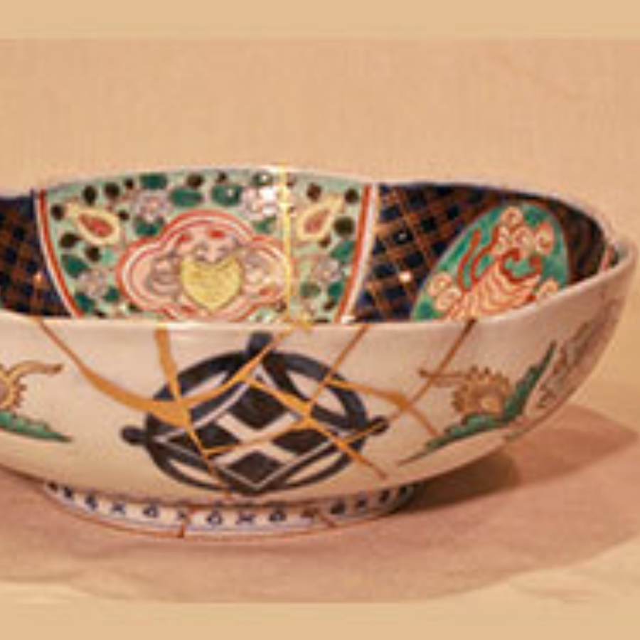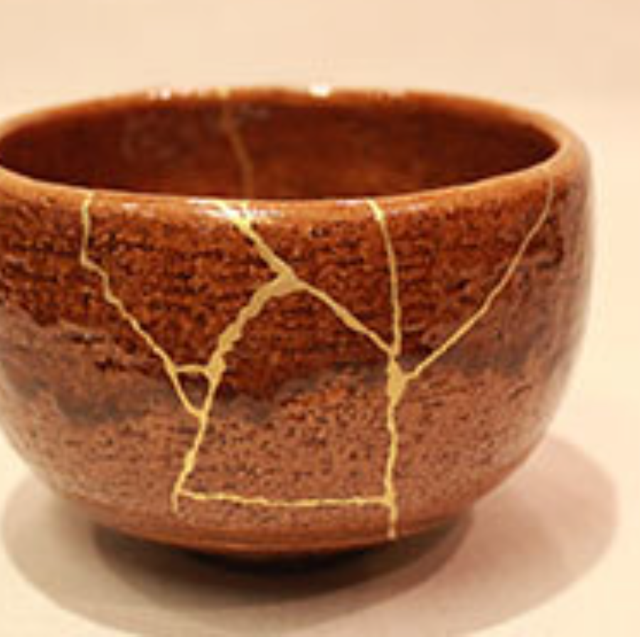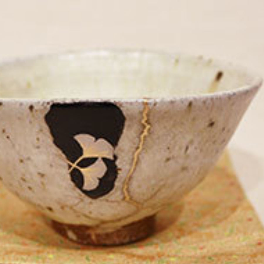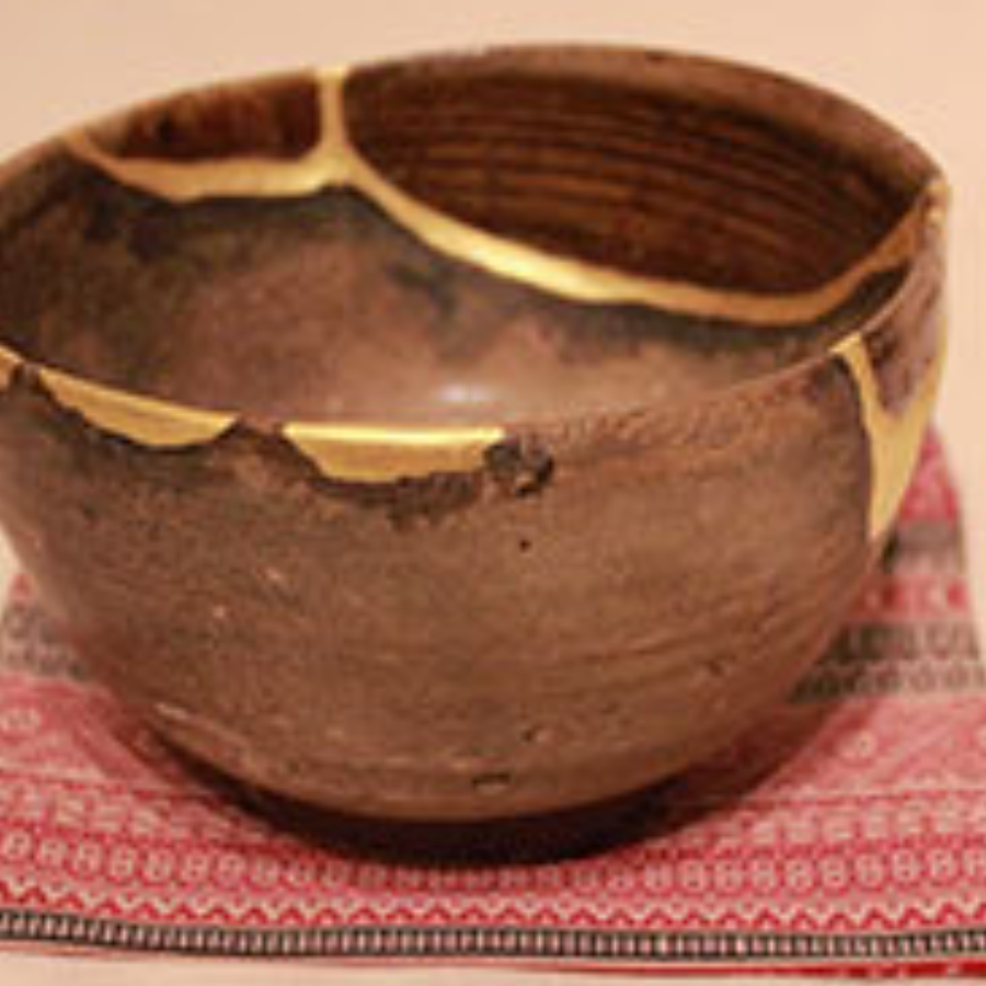 窯割れの器に金直しと