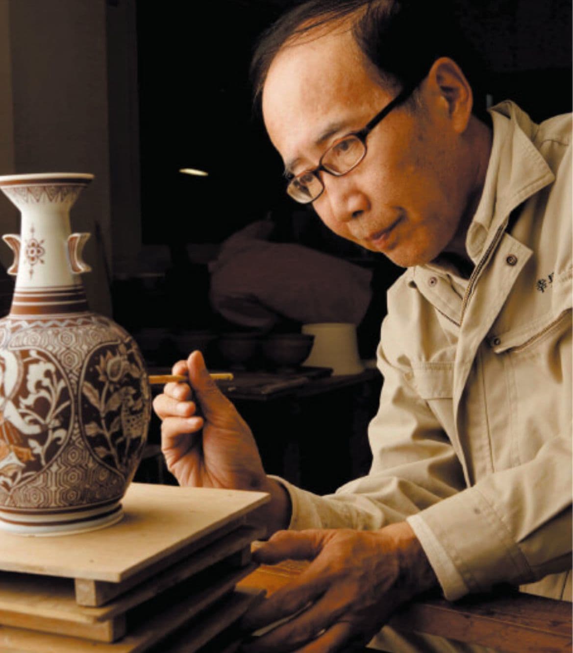 無形文化財保持者(人間国宝)故加藤卓男長男の七代加藤幸兵衛は、日展